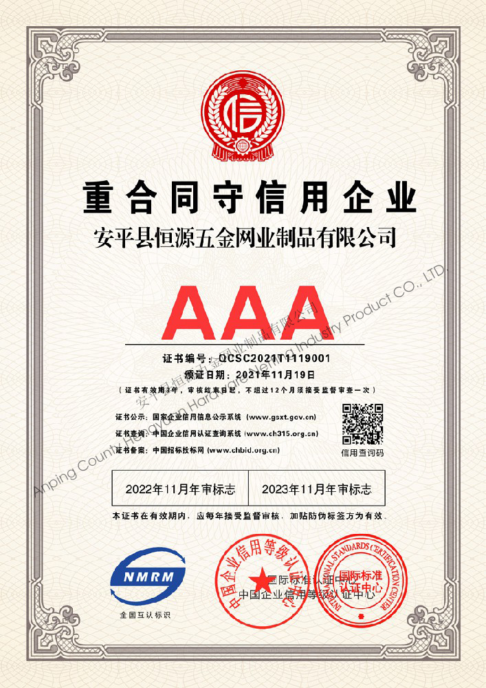 多年來(lái),安平縣恒源五金網(wǎng)業(yè)制品有限公司堅(jiān)持“科技興企、質(zhì)量立業(yè)”的經(jīng)營(yíng)理念和“誠(chéng)心為本、客戶至上”的合作宗旨,優(yōu)化生產(chǎn)工藝,打造優(yōu)質(zhì)產(chǎn)品,提供完善的服務(wù),受到國(guó)內(nèi)外客戶的一致好評(píng),產(chǎn)品行銷全國(guó)各地,并出口美國(guó)、德國(guó)、韓國(guó)、日本、臺(tái)灣等國(guó)家和地區(qū)。